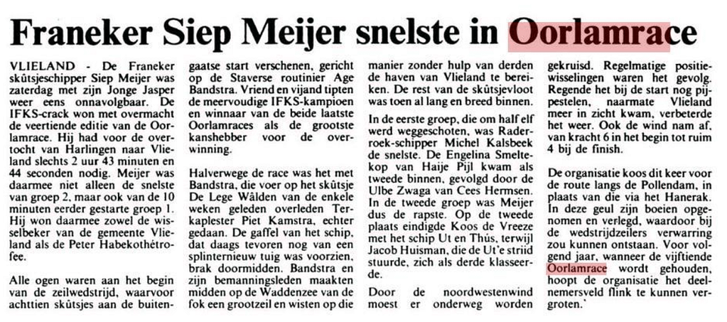 In de jaren 80 en 90 van de vorige eeuw was de Oorlamrace een wedstrijd voor skûtsjes van Harlingen naar Vlieland. Het initiatief kwam van Peter Habekothé, eigenaar van café De Oorlam (nu café Boven, Dorpsstraat, Vlieland).